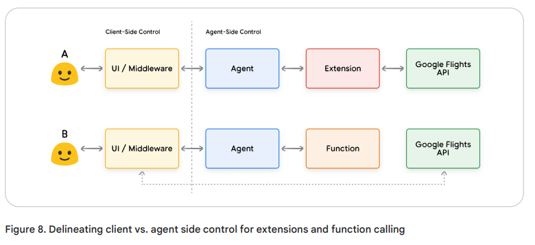 Extension은 에이전트가 직접 API를 호출할 수 있도록 연결해주는 도구입니다. 마치, 에이전트가 스마트폰을 들고 “야 구글, 항공편 좀 찾아줘!” 하고 말하는 느낌이에요.